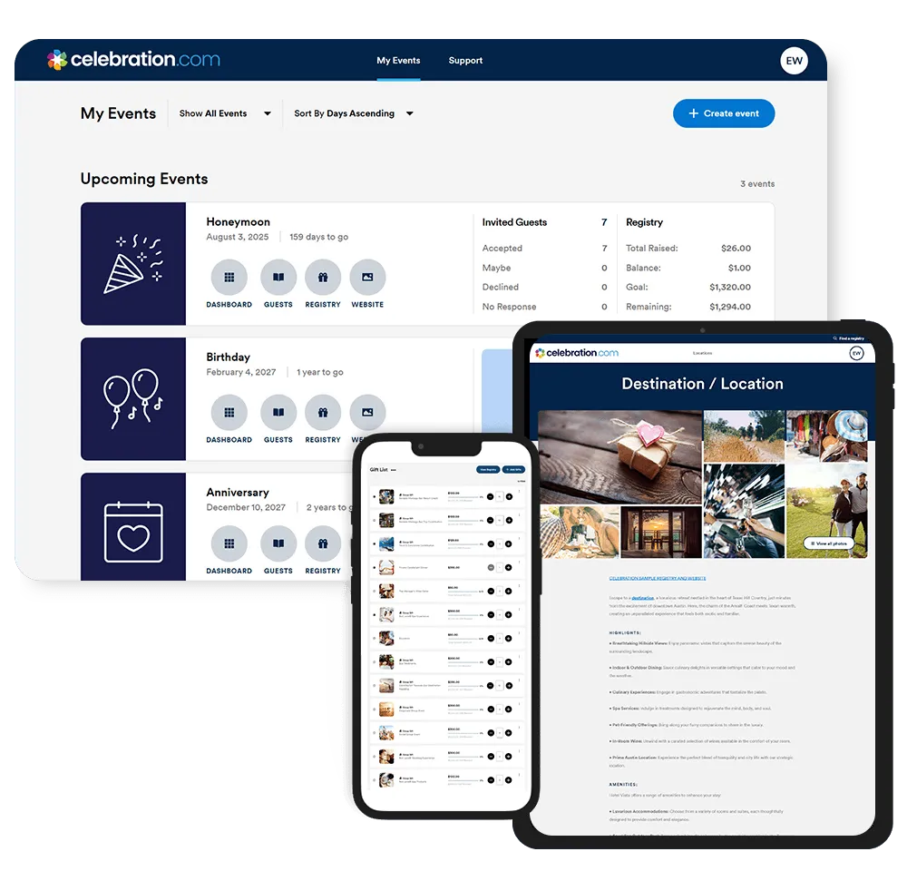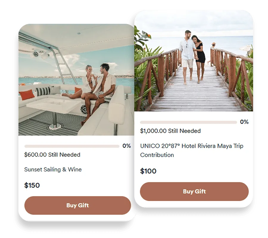 Whether you’re planning an in-person event or celebrating a special occasion with a travel experience, give loved ones the option to pay for part or all of a gift. Redeem registry funds with unique payment preferences.